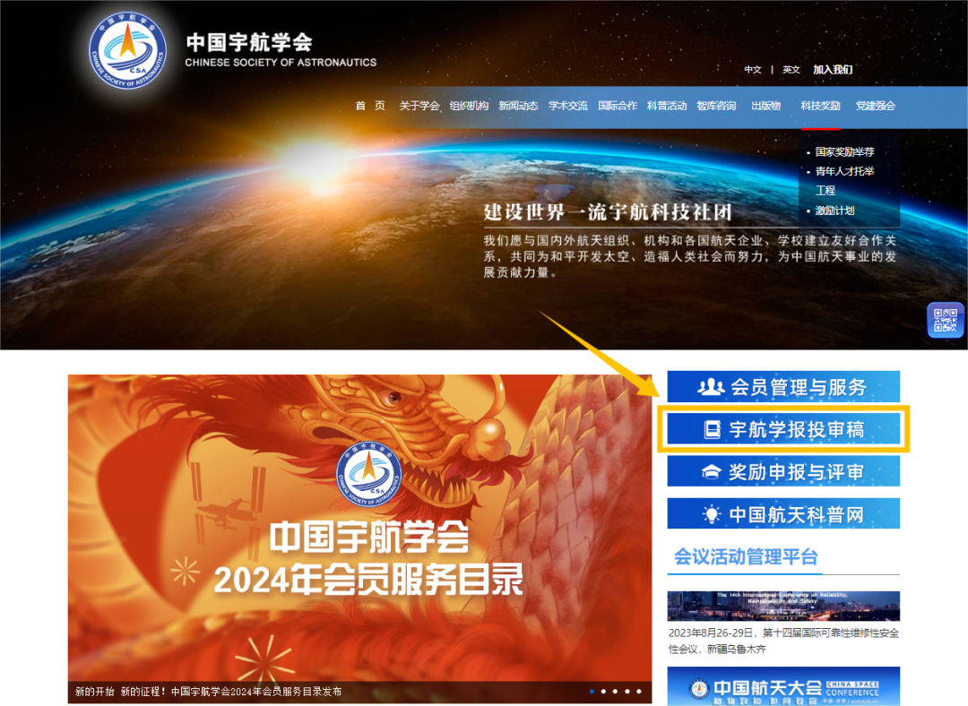 输入以上网址进入中国宇航学会官网