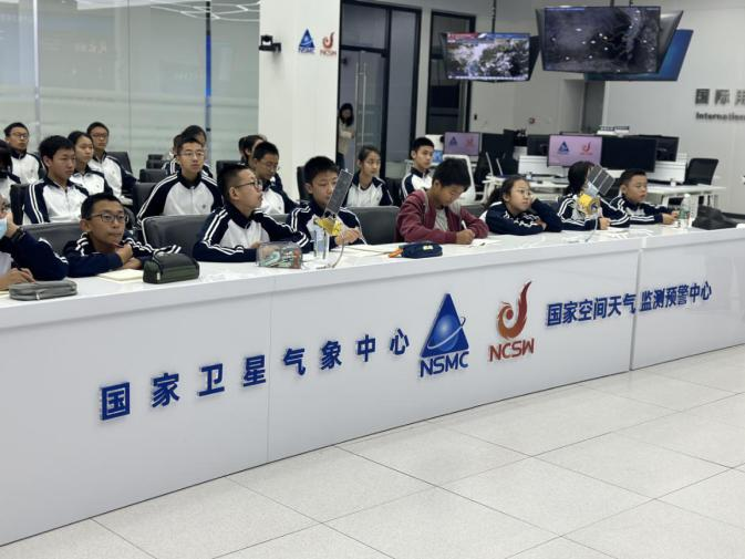 学会组织全国航天特色学校首都师范大学第二附属中学以及北京四中北海校区的师生,共同走进国家卫星气象中心,开启了一场别开生面的科普之旅,通过实地观摩和互动体验,深入了解气象科技的最新进展和气象卫星在监测气候变化中的重要作用,还亲身体验了气象“主播”的工作,了解了天气预报的制作流程和发布机制。